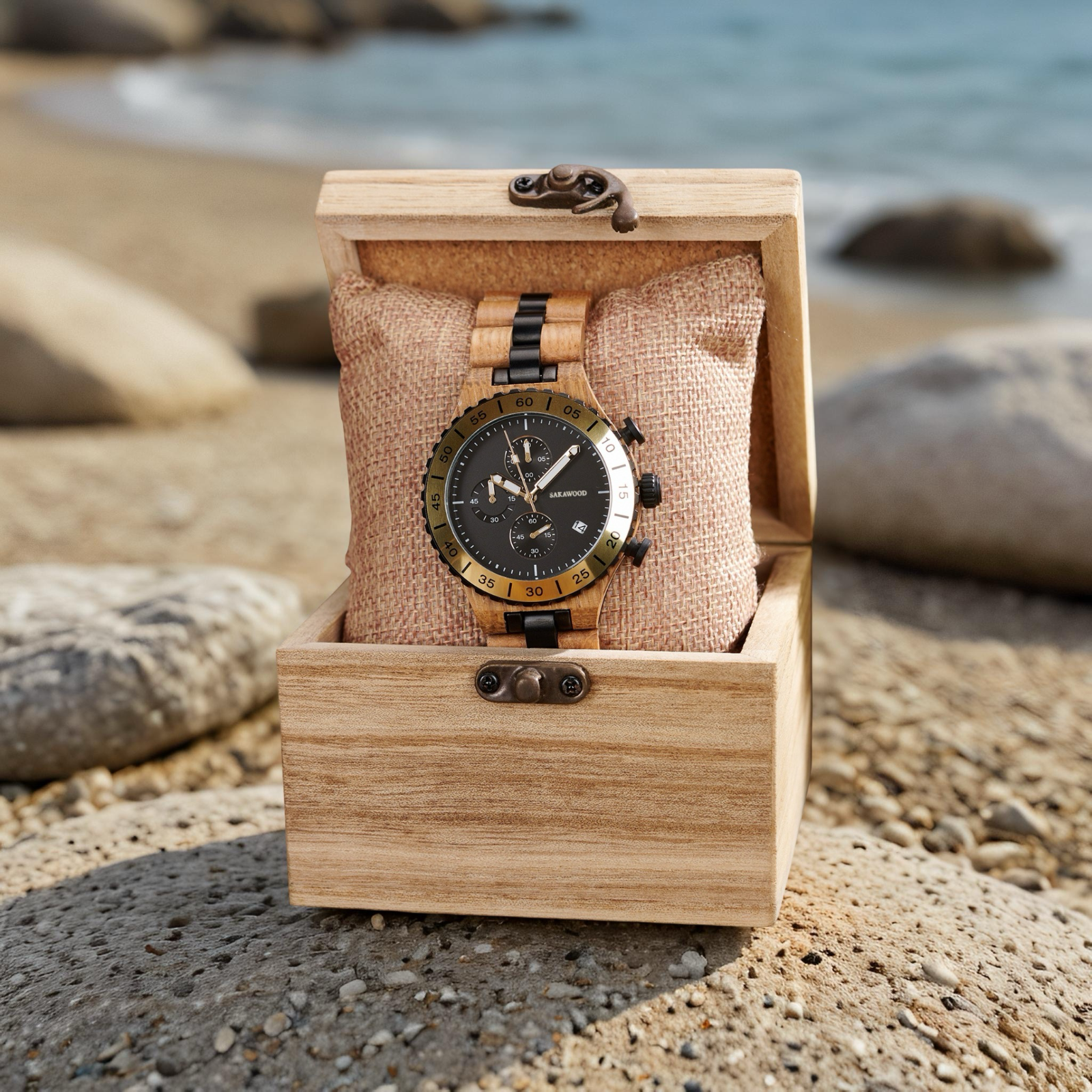 Forged where rivers meet rock, the Sakawood Australia Chronos Riverstone channels power in motion. Crafted from dual-tone zebrawood and brushed black steel, it captures the balance between raw strength and refined flow — timeless, bold, and unstoppable.